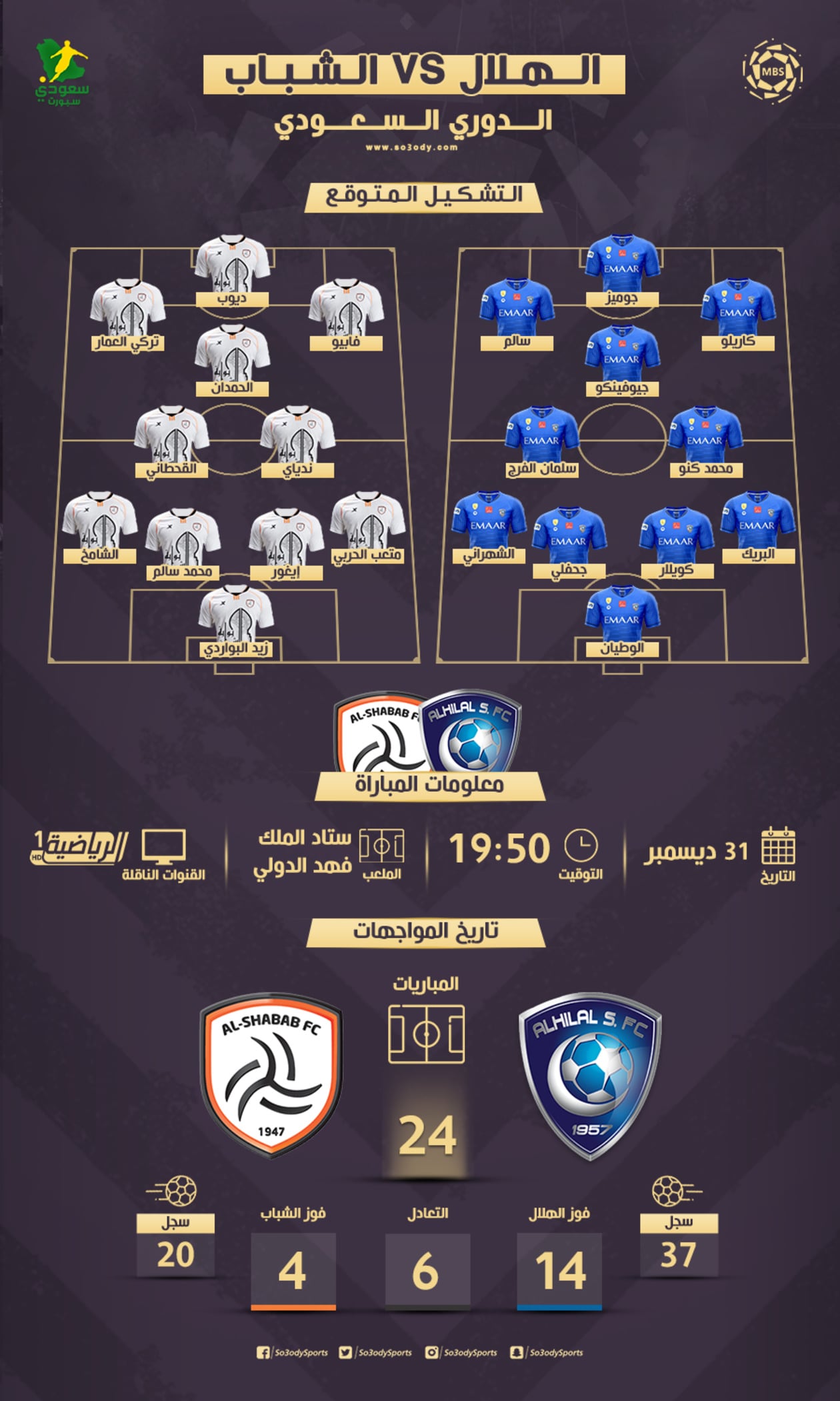 * التشكيل المتوقع للهلال والشباب