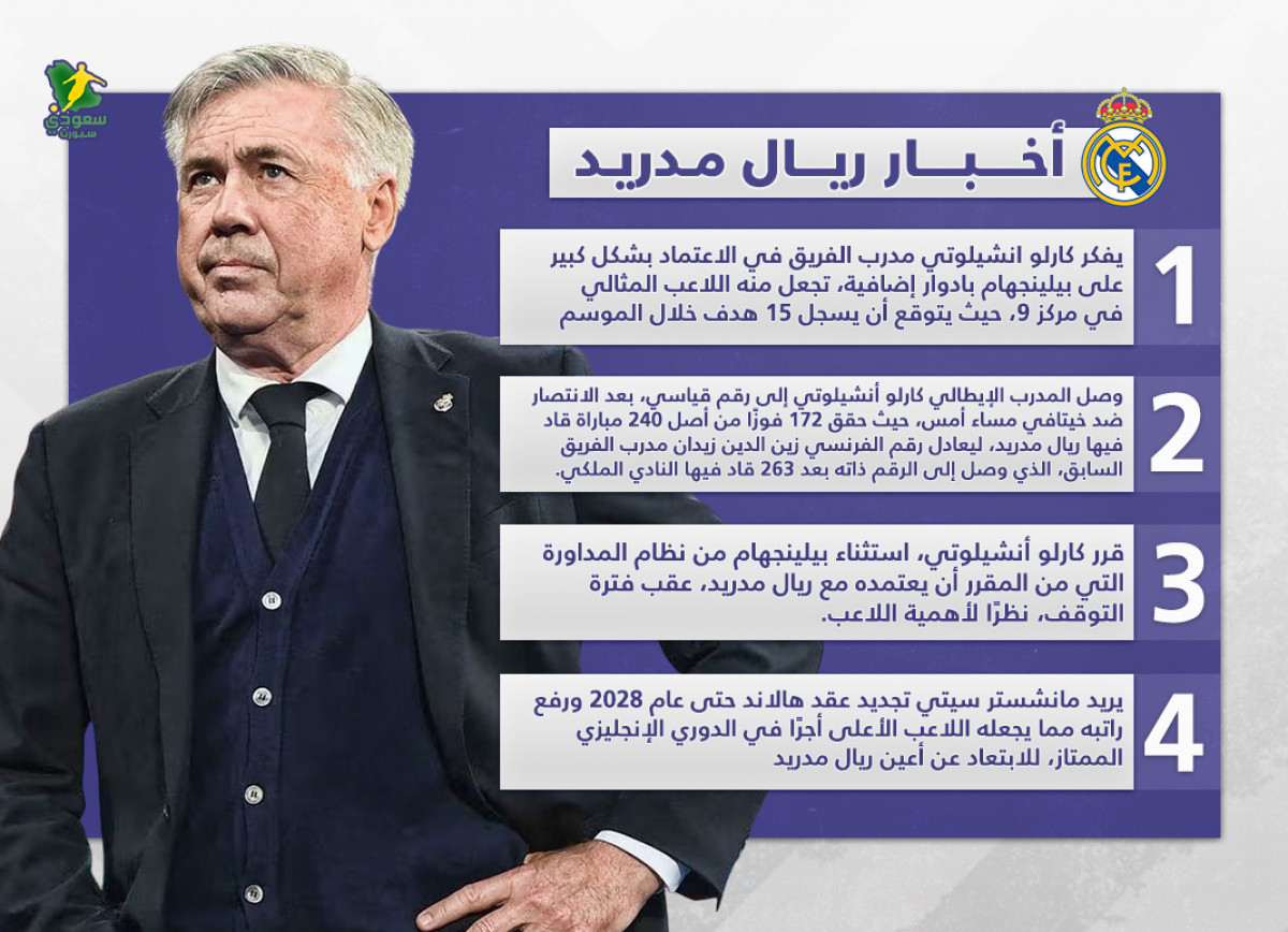 قرر كارلو أنشيلوتي، استثناء بيلينجهام من نظام المداورة التي من المقرر أن يعتمده مع ريال مدريد، عقب فترة التوقف، نظرًا لأهمية اللاعب.