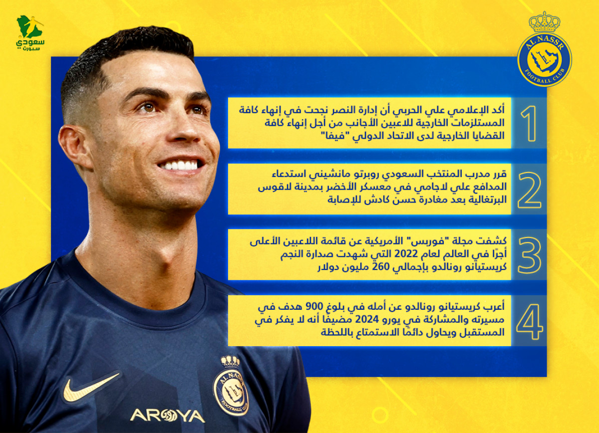 ويقدم "سعودي سبورت" إنفوجرافيك يبرز من خلاله أحدث أخبار نادي النصر في آخر 24 ساعة..