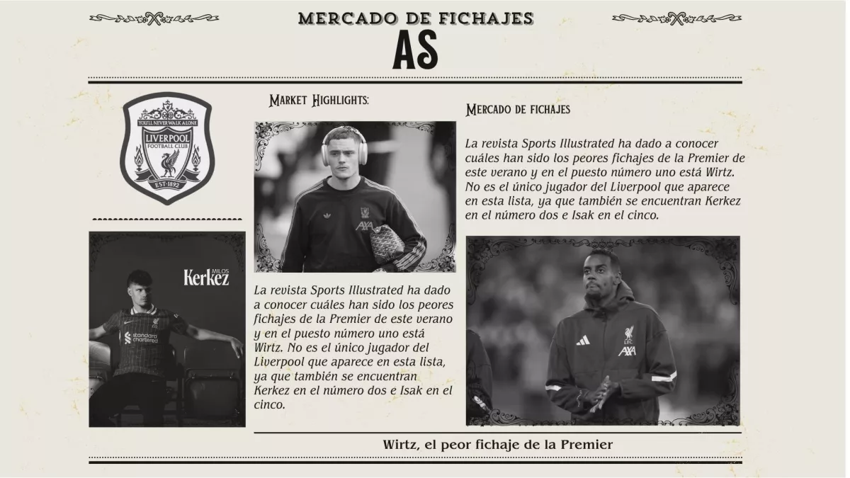 ولم يتوقف الانتقاد عند فيرتز فقط، حيث أدرجت المجلة لاعبين آخرين من صفوف ليفربول في قائمتها، وهما كيركيز الذي وضع في المركز الثاني وإيزاك في المركز الخامس، مما اعتبرته الصحيفة الإسبانية علامة خطيرة على تراجع دقة اختيارات النادي في سوق الانتقالات.