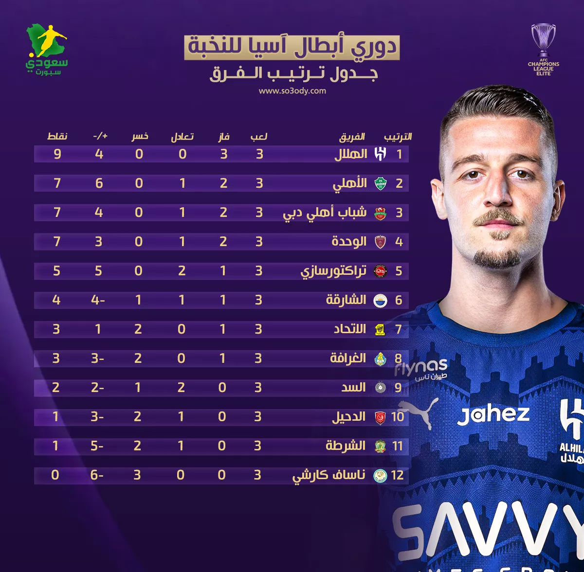 ترتيب دوري أبطال آسيا للنخبة 2025-26 بعد الجولة الثالثة .. صدارة الهلال