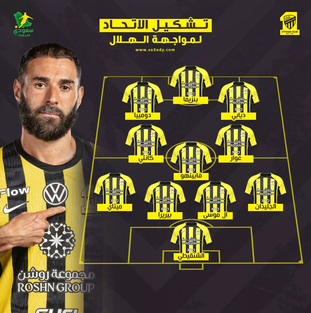 أعلن سيرجيو كونسيساو، المدير الفني للفريق الأول لكرة القدم بنادي الاتحاد، تشكيل الفريق للقاء كلاسيكو الهلال، في مسابقة دوري روشن للمحترفين.