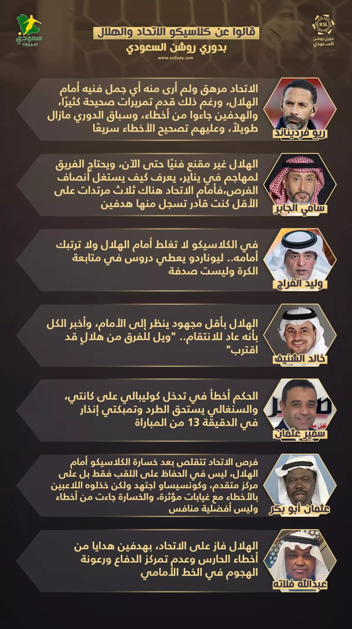 قالوا عن كلاسيكو الاتحاد والهلال بالدوري: