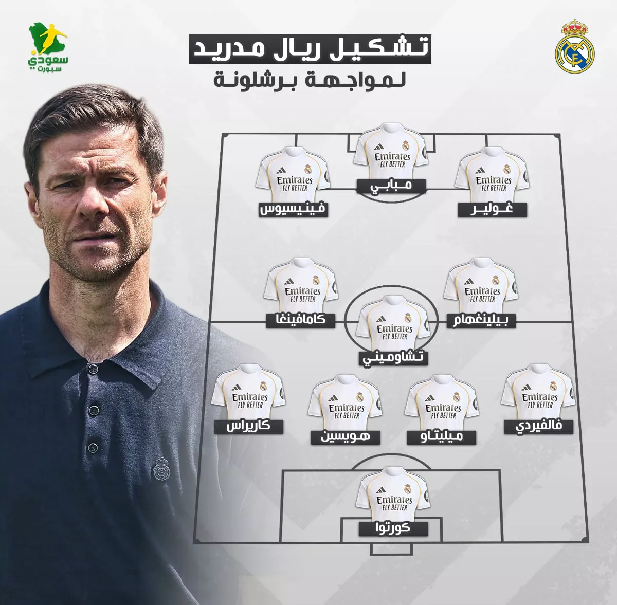 أعلن الإسباني تشابي ألونسو المدير الفني لفريق ريال مدريد، عن تشكيل الفريق الرسمي استعدادًا لمواجهة برشلونة قبل ملحمة كلاسيكو الأرض ضمن منافسات الجولة العاشرة من الدوري الإسباني.