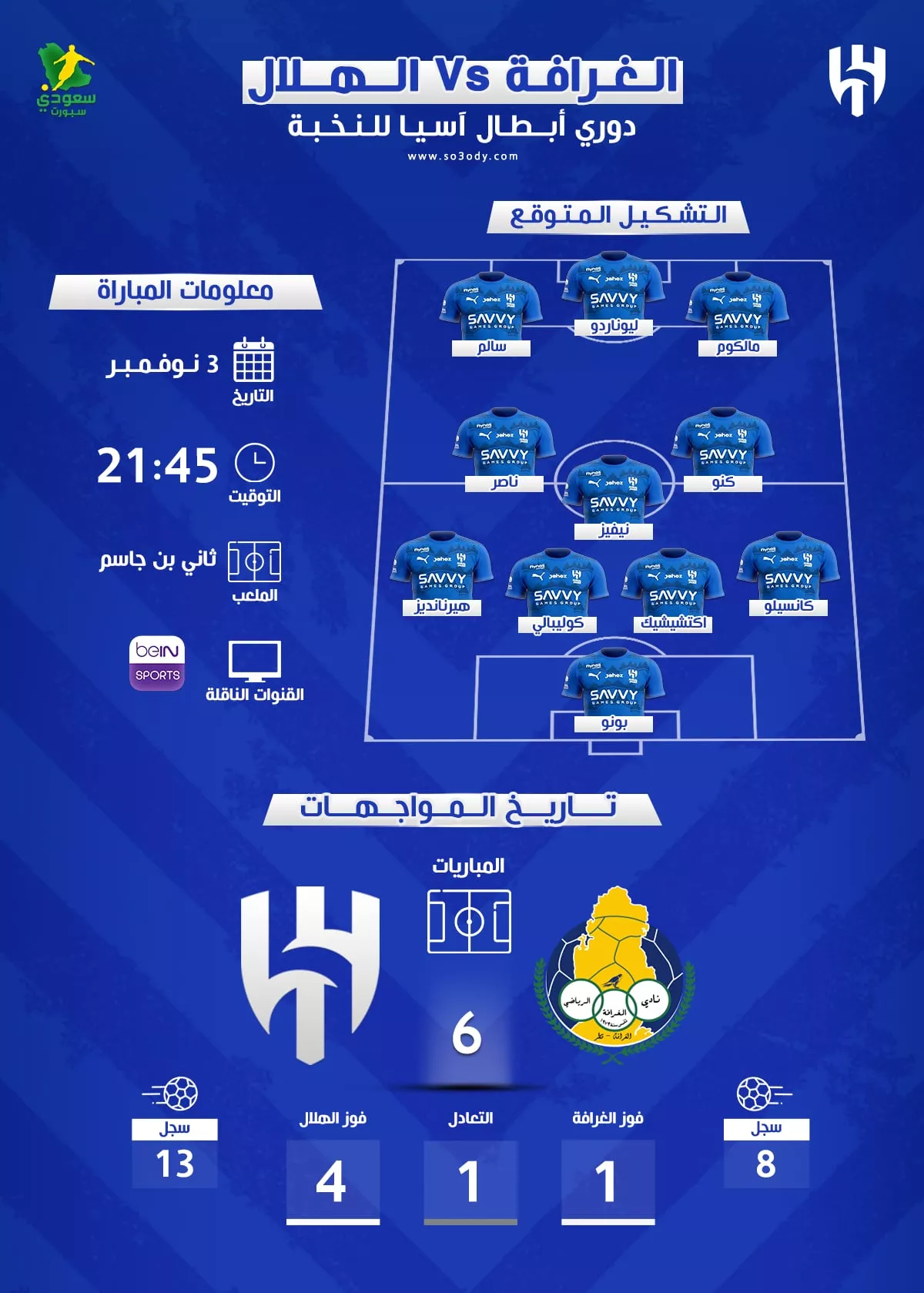المسجلة: 13 للهلال - 8 للغرافة.