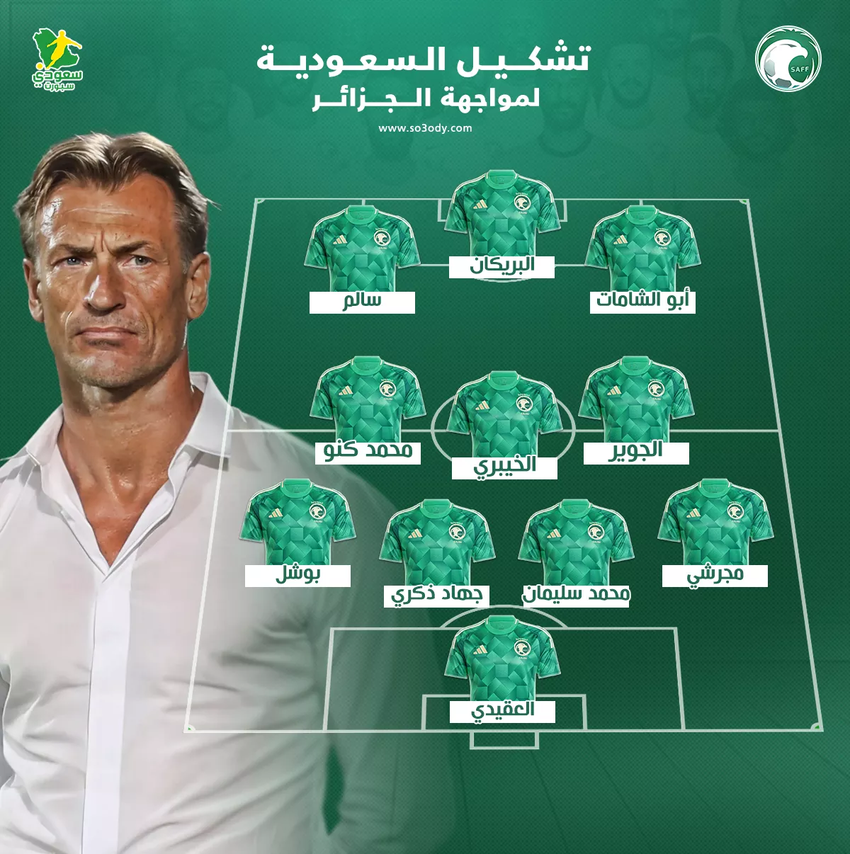 وأعلن الفرنسي المدير الفني لمنتخب السعودية الفرنسي هيرفي رينارد، تشكيل الأخضر الرسمي قبل مواجهة الجزائر اليوم.
