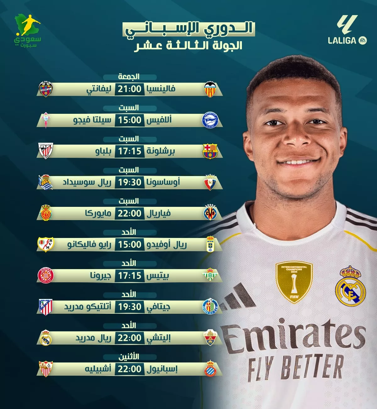 تعود منافسات الدوري الإسباني من جديد مع انطلاق الجولة الـ13، وسط سباق مشتعل على القمة في واحدة من أكثر نسخ الليجا تنافسًا في السنوات الأخيرة.