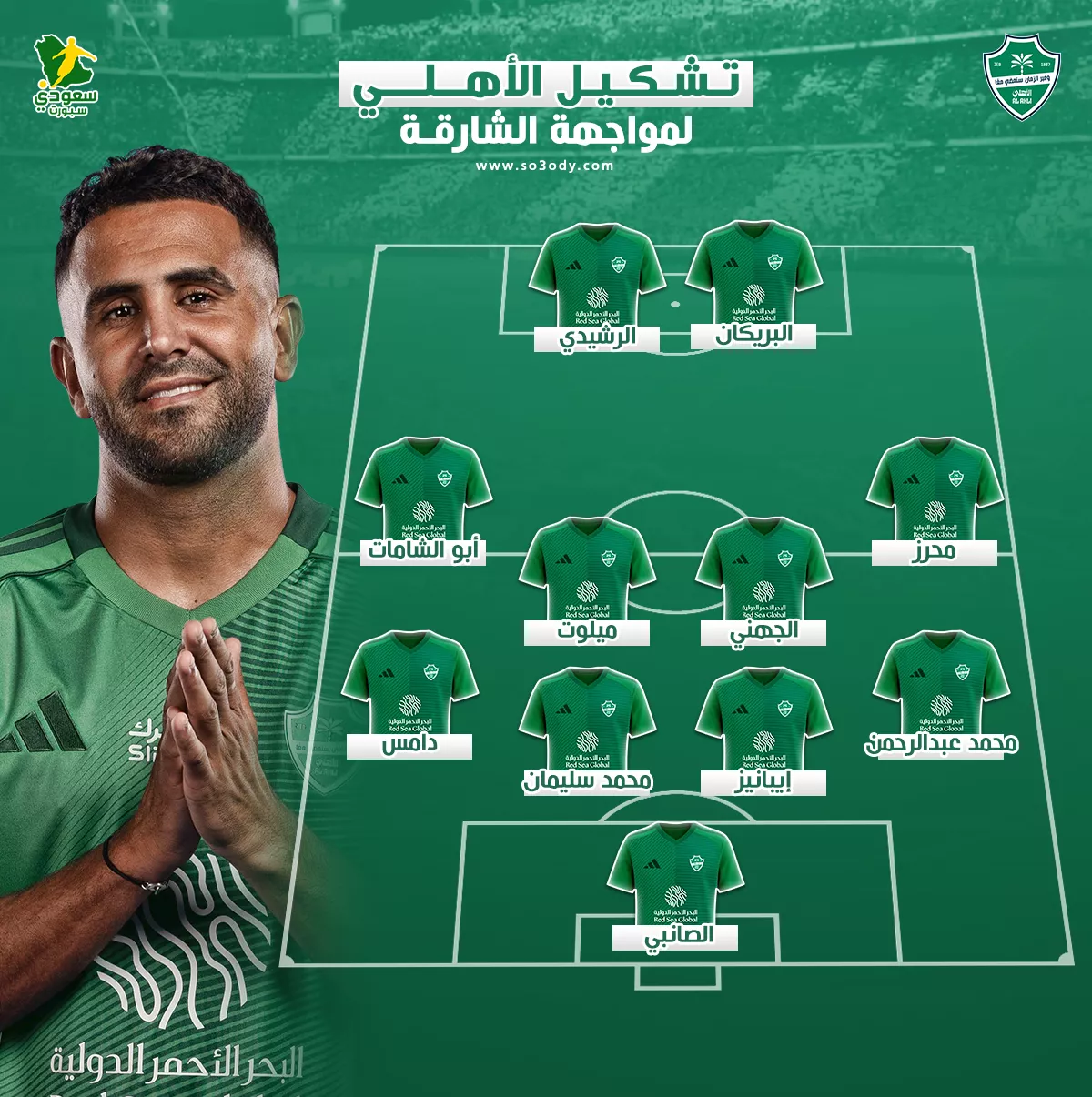 في خط الوسط: زياد الجهني ، ميلوت ، رياض محرز ، صالح أبو الشامات