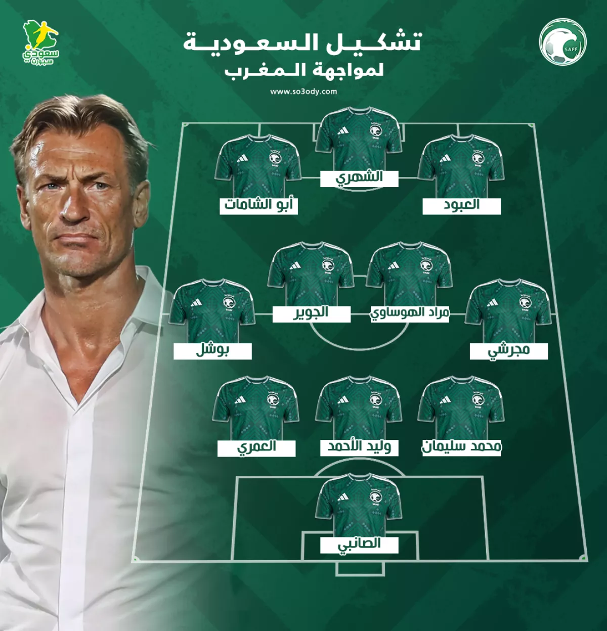 تشكيل السعودية الرسمي أمام المغرب .. تغييرات بالجملة من رينارد