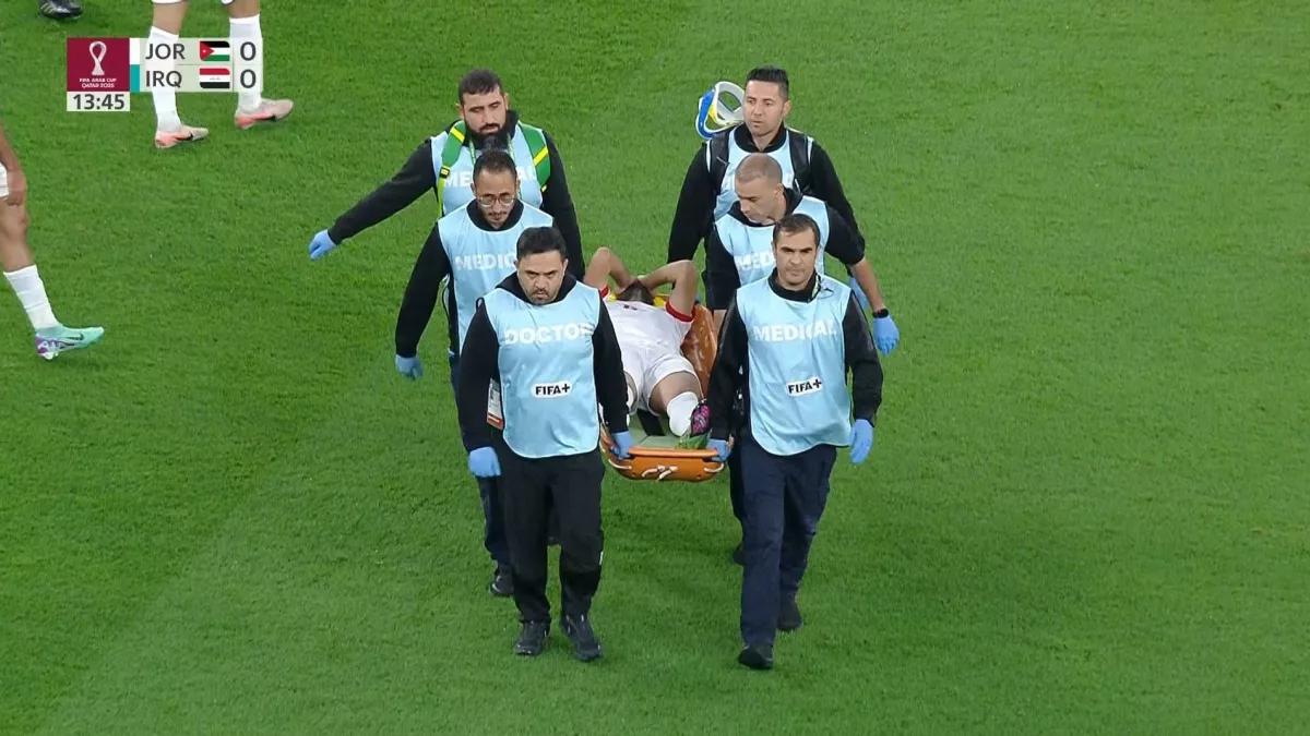 - إصابة يزن النعيمات نجم منتخب الأردن بإصابة قوية بعد فتح الحوض وثبات القدم ودوران الركبة ، ومن طريقة الإصابة .. للأسف :