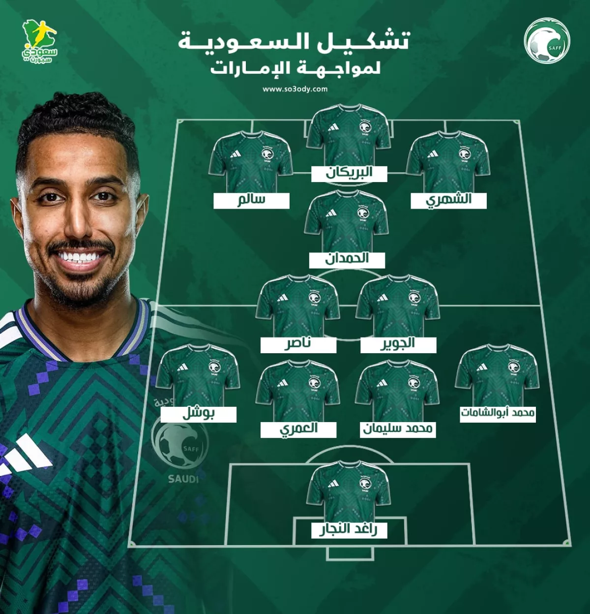 تشكيل السعودية الرسمي ضد الإمارات في كأس العرب 2025