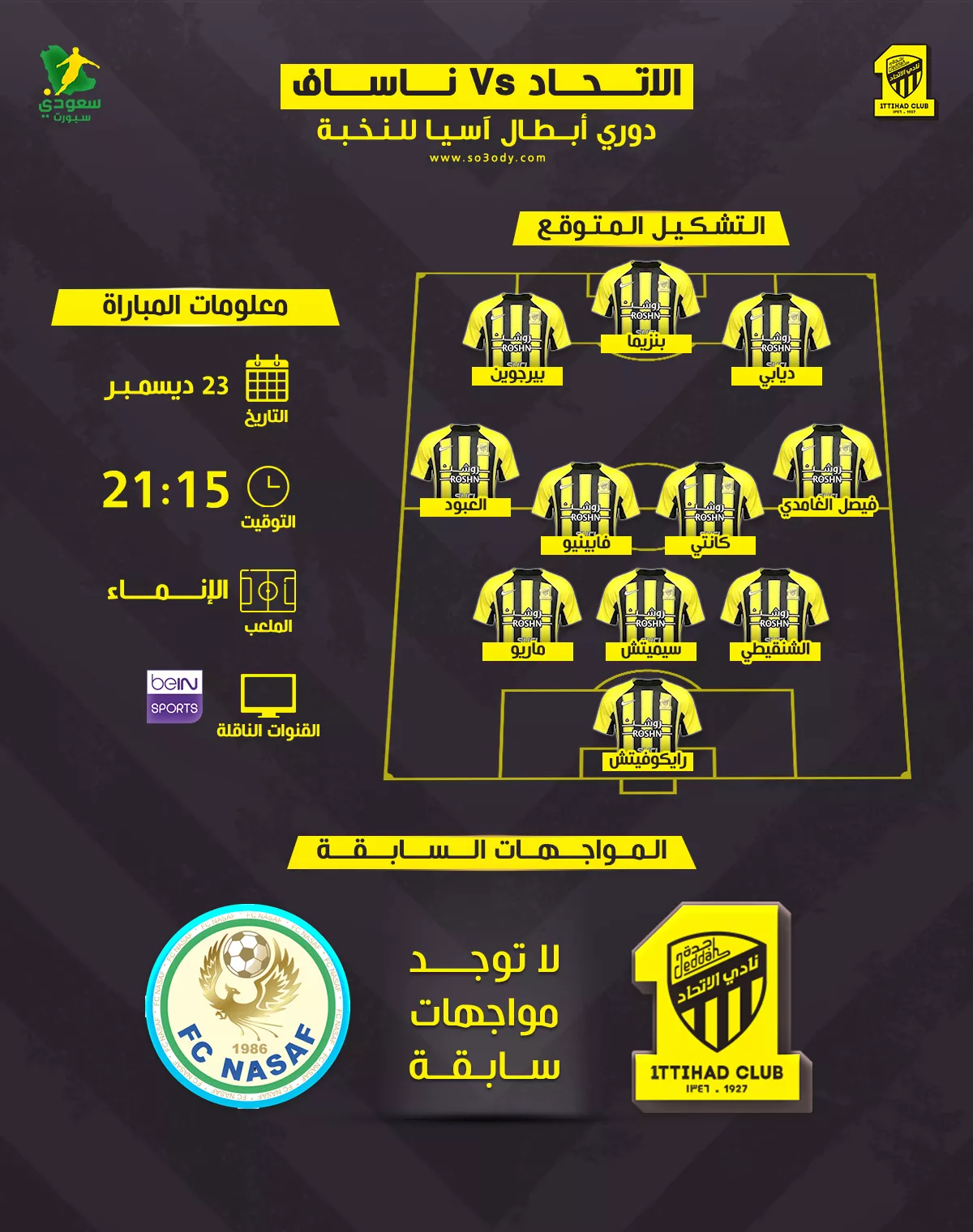 نشكيل الاتحاد المتوقع ضد ناساف الأوزبكي