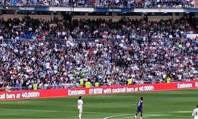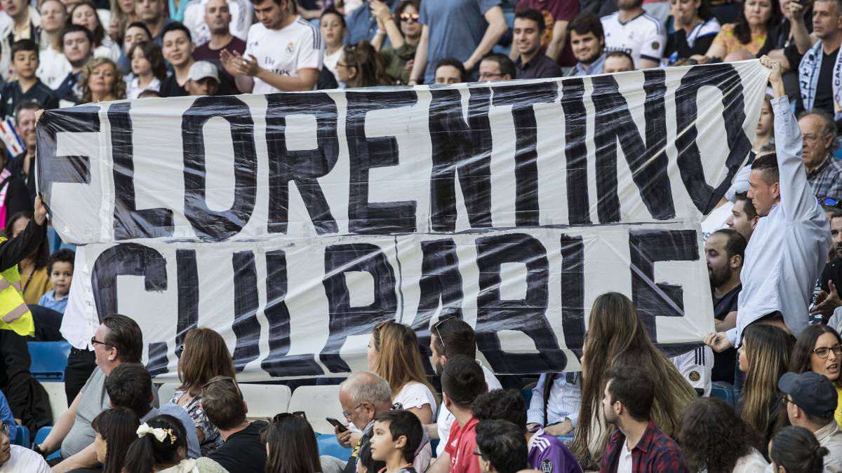 ورفعت جماهير ريال مدريد لافته في مدرجات ملعب سانتياجو برنابيو، تهاجم من خلال بيريز، والتي حملت معنى "فلورنتينو.. أنت مذنب"، في إشارة لتسببه لما حدث من تراجع في نتائج الفريق الملكي هذا الموسم.