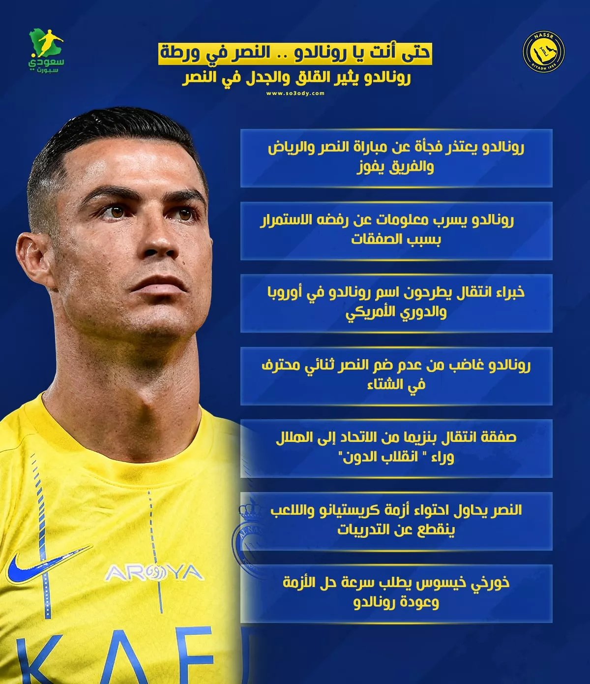 رونالدو يثير القلق والجدل في النصر