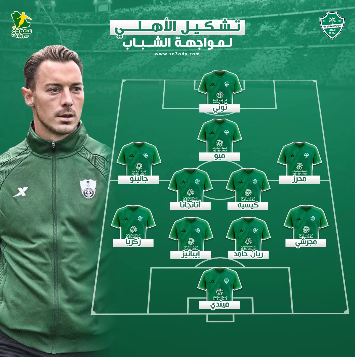 وأعلن الألماني ماتياس يايسله، المدير الفني للنادي الأهلي، تشكيل "الراقي" الرسمي، ضد نادي الشباب في دوري روشن، التي تقام مساء اليوم.
