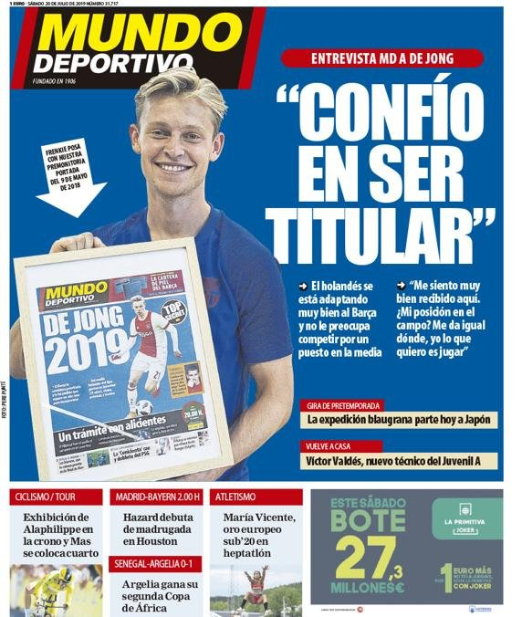 موندو ديبورتيفو: دي يونج: "واثق في أنني سأكون أساسيا في التشكيلة".