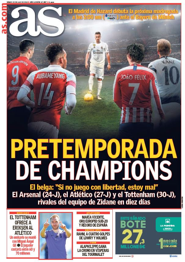 ويقدم "سعودي سبورت" أهم أغلفة الصحف العالمية الصادرة صباح اليوم السبت 20 يوليو 2019.