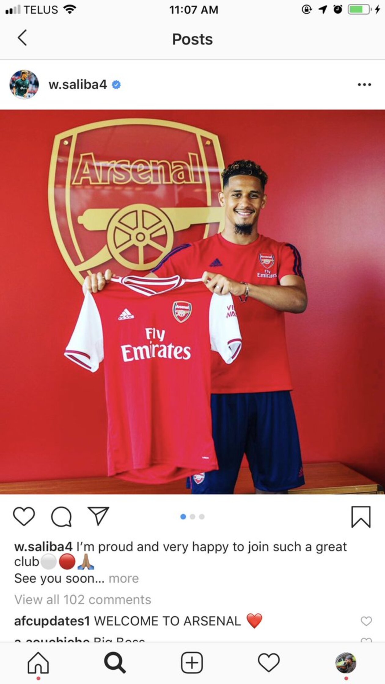 أعلن أرسنال رسمياً تعاقده مع المدافع الفرنسي الواعد ويليام صليبا من سانت إيتيان الفرنسي مقابل مبلع مالي لم يتم الإعلان عنه.