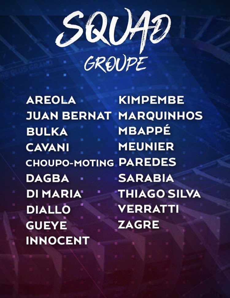 واستبعد المدرب الألماني نجمه نيمار، مع استمرار الشكوك حول مستقبله مع النادي الباريسي، وتأكيدات الأول أن اللاعب البرازيلي قد يلعب مباراة اليوم.