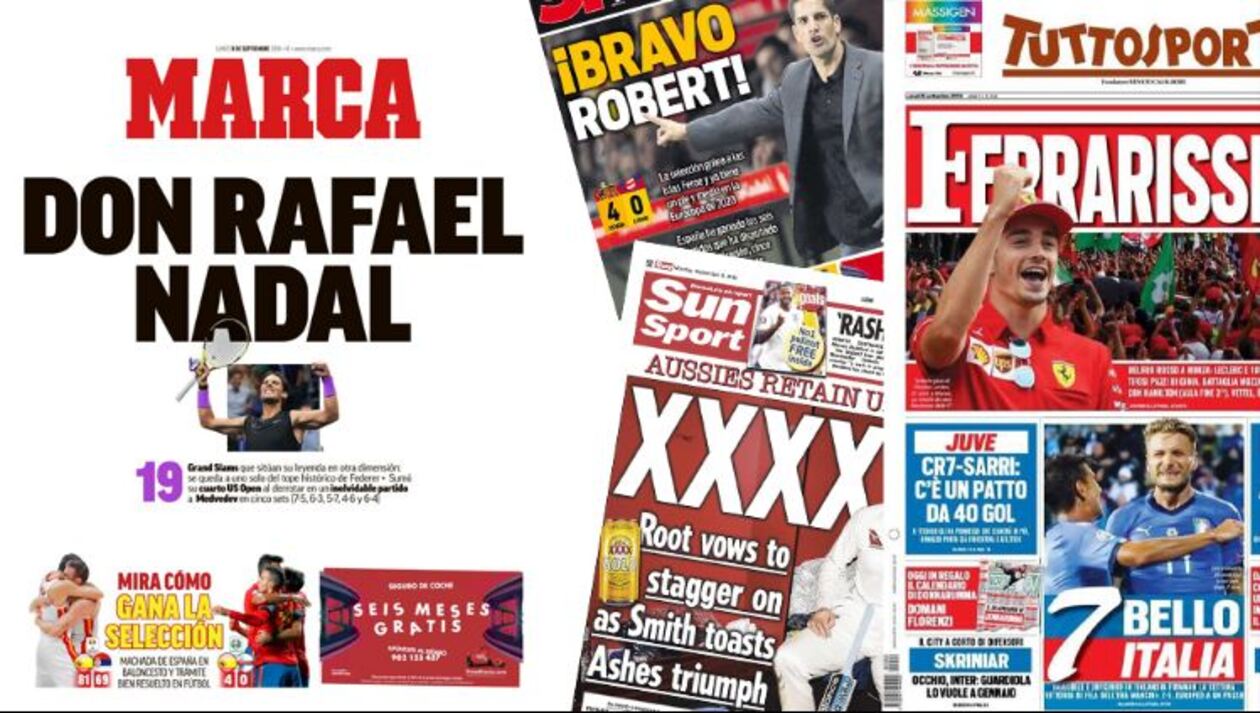 احتفلت الصحف الإسبانية صباح اليوم بتتويج رافييل نادال ببطولة أمريكا المفتوحة للتنس، ليصل للقبه الـ19 في الجراند سلام.