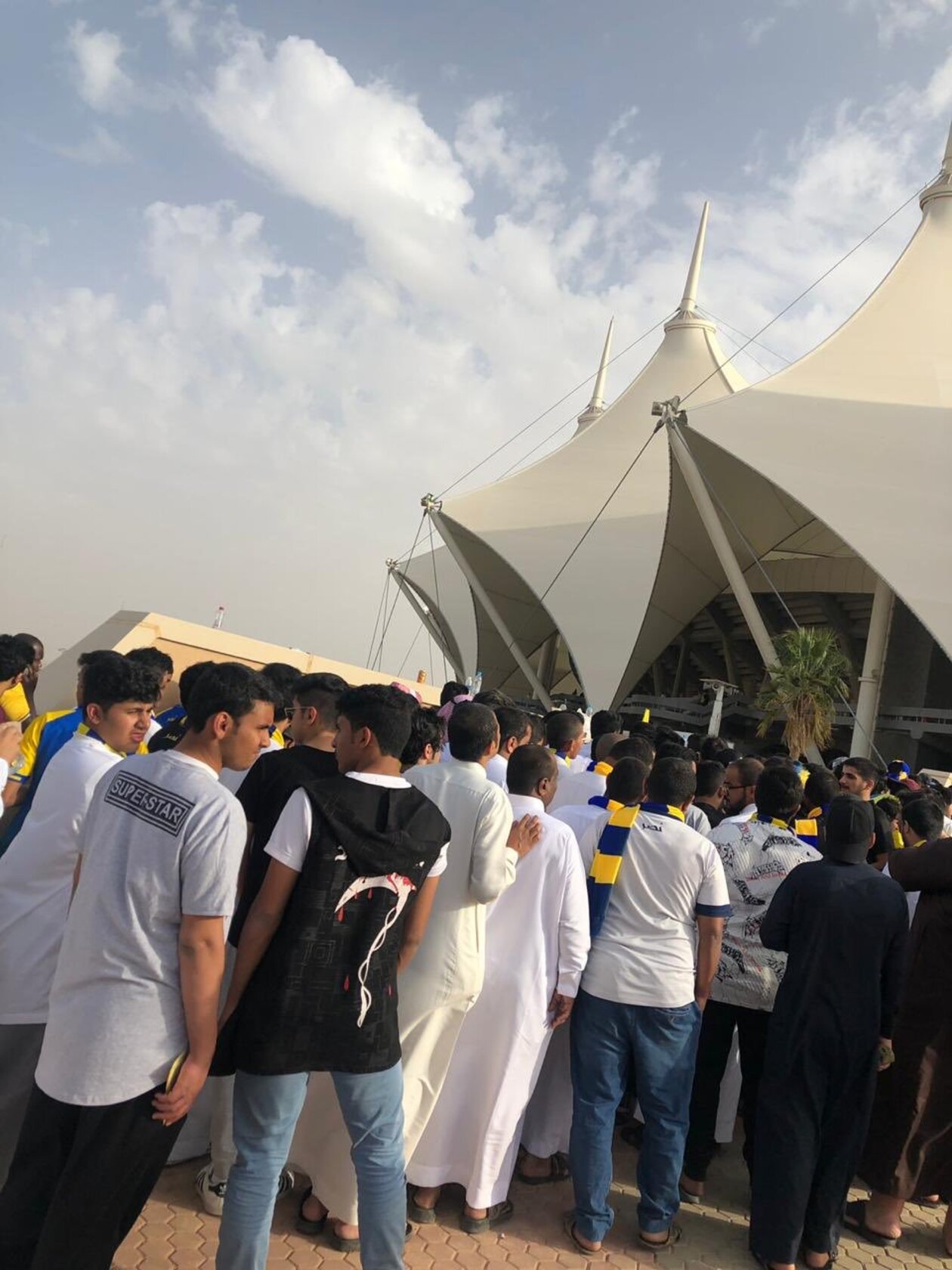 تواجه جماهير نادي النصر، اليوم الجمعة، معاناة كبيرة في الدخول لملعب الملك فهد الدولي "درة الملاعب" لمتابعة مباراة "العالمي" والحزم، بدوري كأس الأمير محمد بن سلمان.