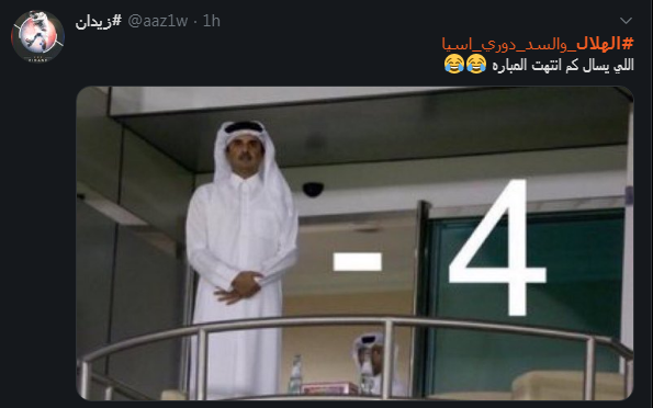 من ناحيته نشر حساب باسم زيدان، صورة لتميم بجوارها رقم أربعة، قائلًا: "للذي يسأل كم انتهت المباراة".