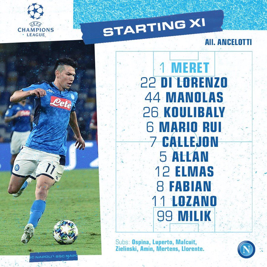 ويخوض مدرب البارتينوبي كارلو أنشيلوتي المباراة بطريقة 4-3-3، وخلت تشكيلته من درايز ميرتنز المتواجد على دكة البدلاء، بالإضافة للقائد الغائب عن قائمة المباراة لورنزو إنسيني.