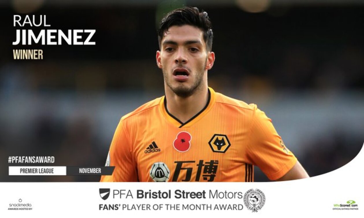 أعلنت رابطة اللاعبين المحترفين الإنجليزية عن فوز مهاجم وولفرهامبتون راؤول خيمينيز بجائزة لاعب الشهر في البريميرليج.