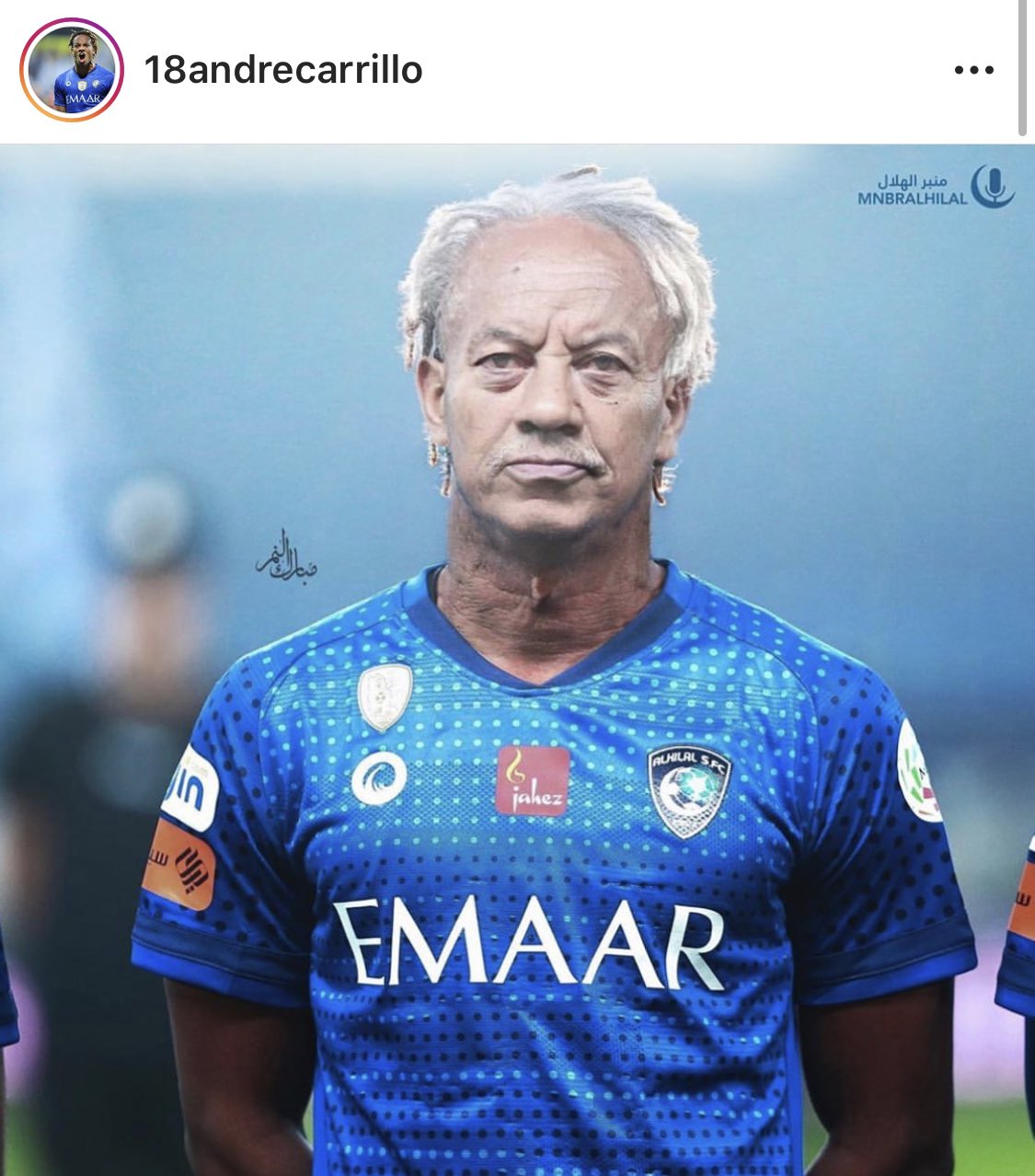 ونشر كاريلو صورة عبر حسابه الشخصي بموقع "إنستجرام"، ظهر خلالها شيخًا كبيرًا ذا شعر أبيض، وعلق عليها برسالة قال فيها "التركيز للمباراة القادمة".