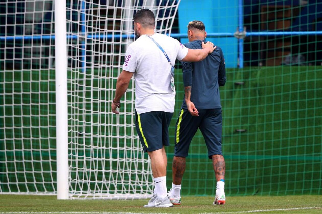 ولليوم الثاني على التوالي لم يتمكن نيمار من استكمال التدريبات، وشارك في عشرة دقائق فقط، وغادر بصحبة طبيب المنتخب دون أي تدخل من أي لاعب على نيمار، بعد الشكوى من جديد بإصابة بالكاحل.