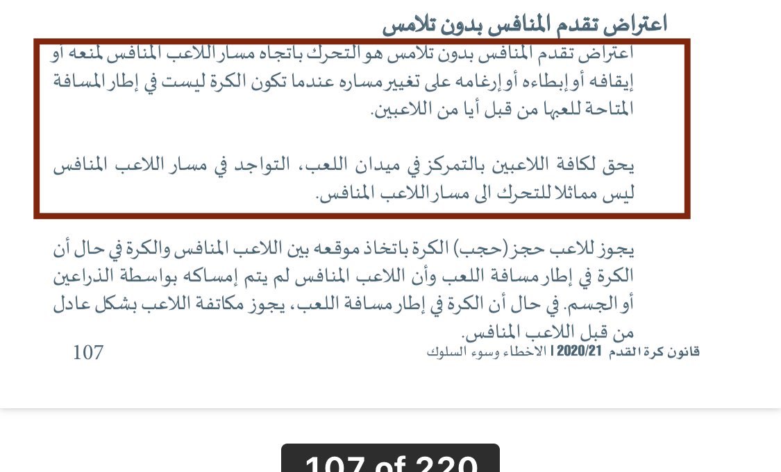 وأضاف:"اثناء ضربات الزواية من الممكن ان تقف أمام حارس المرمى ولايوجد قانون يمنع ذلك ؛ ولكن التحرك نحو الحارس اثناء وبعد التنفيذ يعتبر مخالفة !".