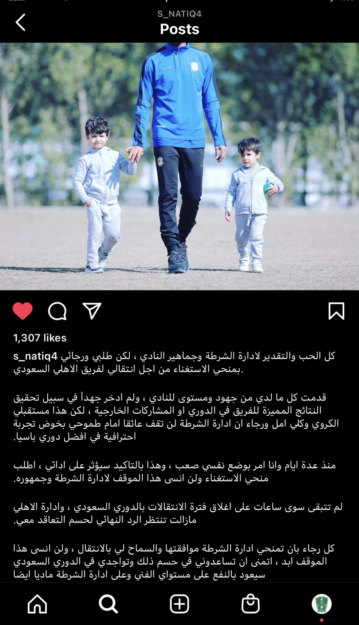 وشدد سعد ناطق، في رسالته لمسئولي الشرطة، على أنه لم يتبق سوى ساعات على إغلاق فترة الانتقالات، بالدوري السعودي؛ قائلًا: "برجاء منحي الموافقة والسماح بانتقالي".