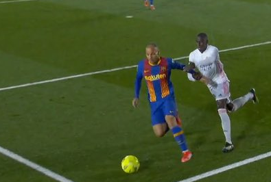 الحكم خيل مانزالو، لم يلجأ إلى تقنية حكم الفيديو المساعد، بينما قرر استكمال اللعب بصورة طبيعية، ما اعترض عليه ليونيل ميسي، لذا حصل على بطاقة صفراء، بجانب المدير الفني رونالد كومان، للسبب ذاته.