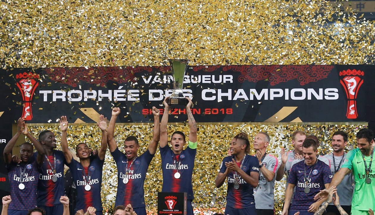 توج باريس سان جيرمان، اليوم السبت، بلقب كأس السوبر الفرنسي 2018، بعد الفوز على موناكو، بأربعة أهداف مقابل لا شيء، في المباراة التي جمعتهما في الصين.
