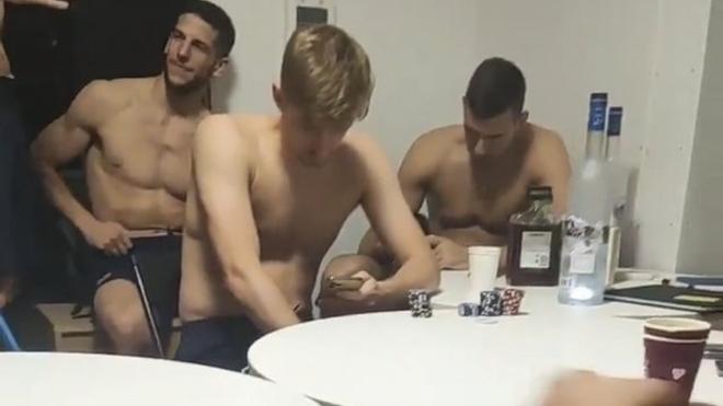 ونشر عدد من لاعبي سلوفينيا عبر حساباتهم الشخصية على "إنستجرام" صور، ومقاطع فيديو من الحفل، الذي شهد تواجد زجاجات خمور، بالإضافة للعبة البوكر "قمار".